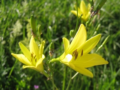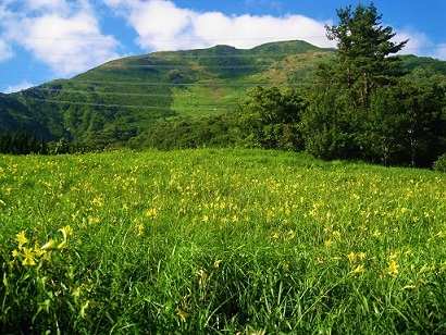 下山時(16時頃)、伊吹山3合目から山頂をバックにしたユウスゲの群生は見事でした。