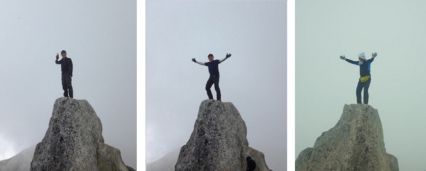 き、狭く切り立った山頂では相当の注意を要しました。8日の一の倉沢トレッキングは生憎の天気で、大岩壁を