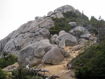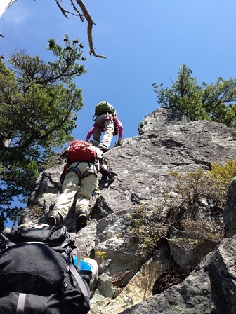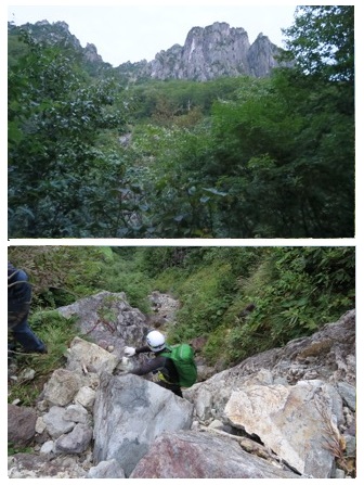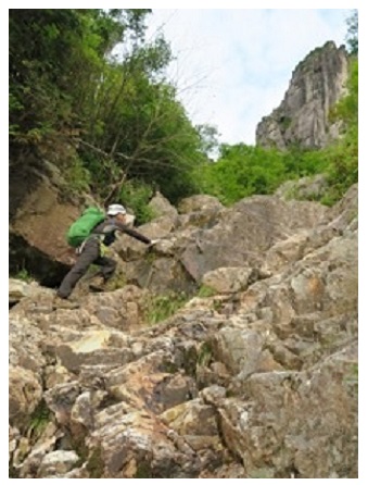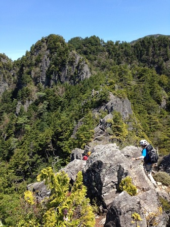 | 第一岩峰 メンバーは気を引き締め慎重に登り始めました。 | 第二岩峰、第三岩峰 見るからにとてもワイルドでした。 |