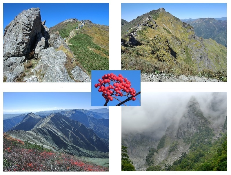 両山ともに360°の大展望と、大絶壁、岩尾根、ロープ場と多少のスリルと変化に富んだ山行でした。