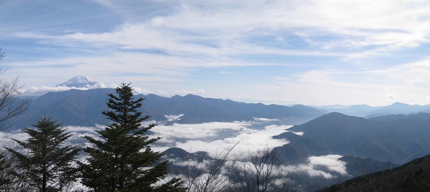 山梨百名山の富士見山へ行って来た。身延町から標高700mの登山口手前までは霧が立ち込めていたが登