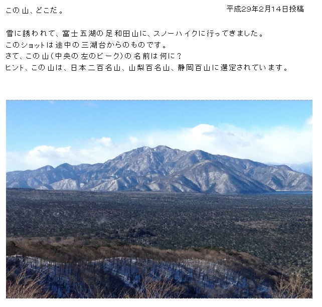 富士山麓、小天狗塚スノーハイク 平成29年2月19日投稿