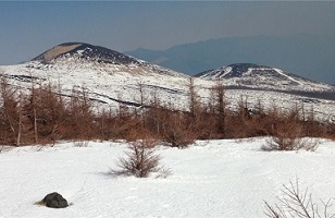 す。軽アイゼンやスノーシューを使ってシラカバやカラマツ林をくぐり抜けての快適な登山でした。快晴の天候に