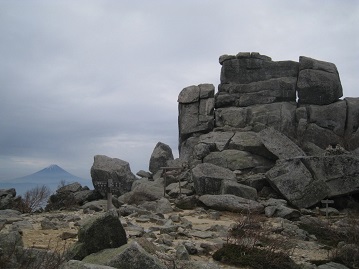 | 金峰山から大日岩への天上の岩稜線 | 富士山をバックにした五丈岩 |