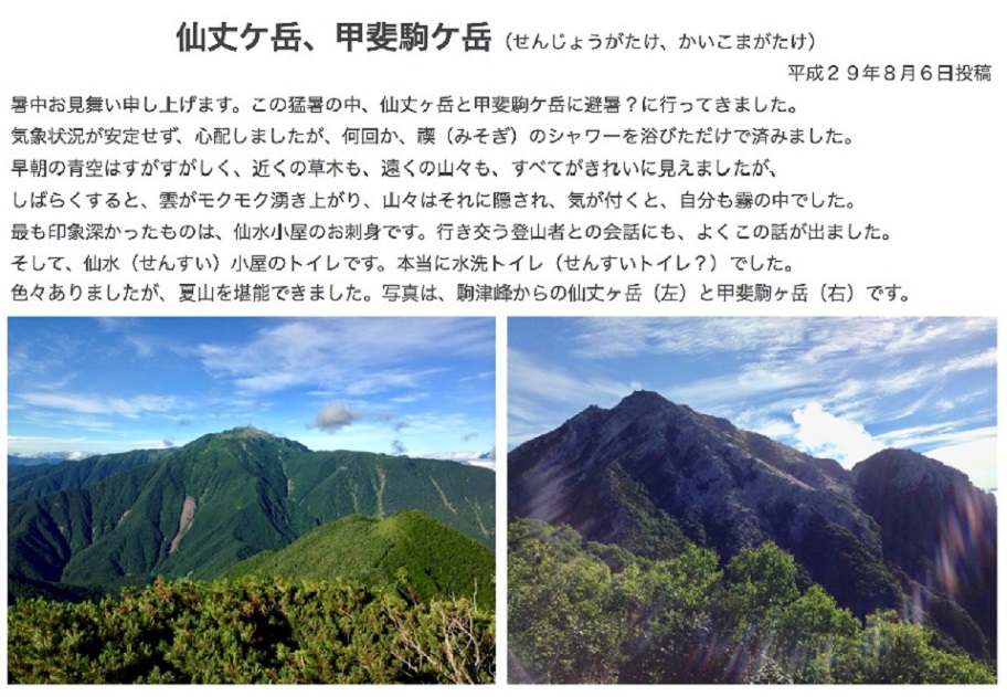 | 山伏峠のマツムシソウ群地 | 蝙蝠岳 | 仙塩尾根から塩見 |