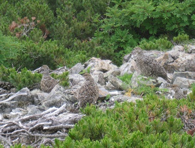色を堪能できた。農鳥岳下山中5羽のライチョウ一家にも出会えたし、まだまだ咲き残っていた高山植物の花々