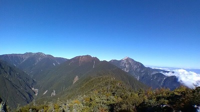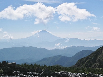 2日目は塩見を越えて蝙蝠まで。蝙蝠の頂上でビバーク。富士山がよく見えました。