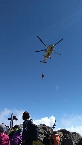 ではなんと負傷者を山梨県警のヘリが救助するのに遭遇。あんなに近くでヘリを見上げることになるとは思って