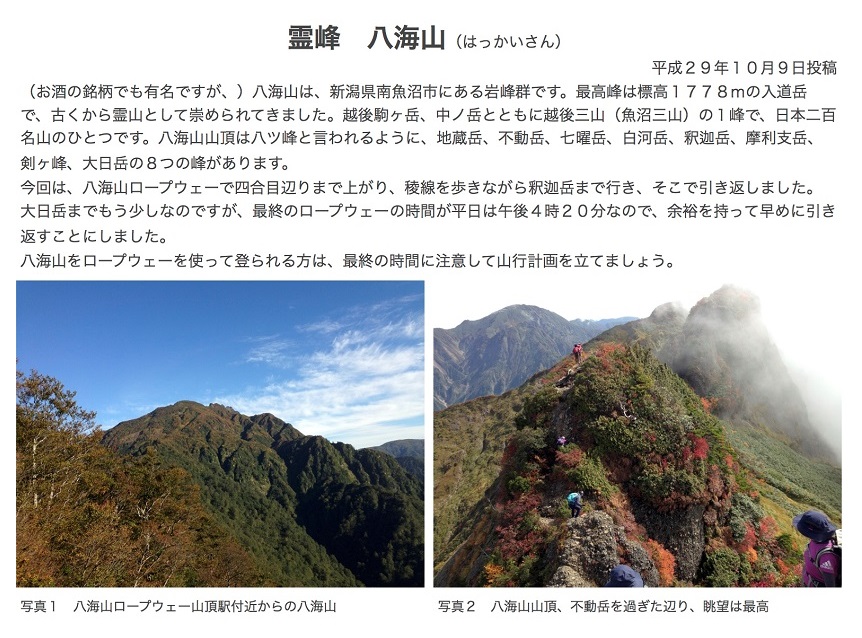 ヒント 越後三山から八海山を除いて、この山を加えると裏越後三山などとも呼ばれています。
