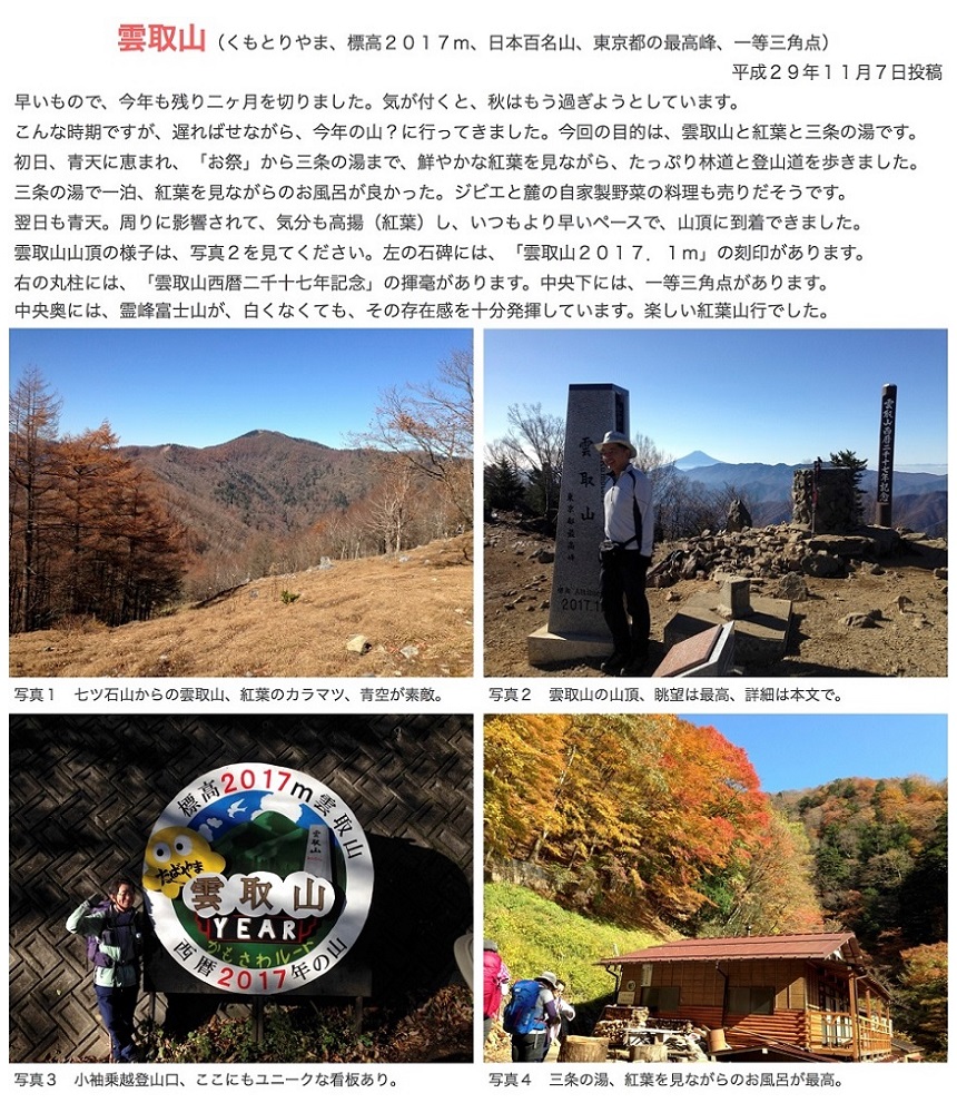 秋雨と台風の合間をぬって新潟の山を歩いて来ました。