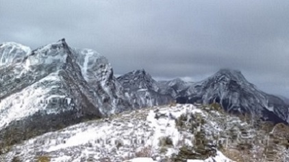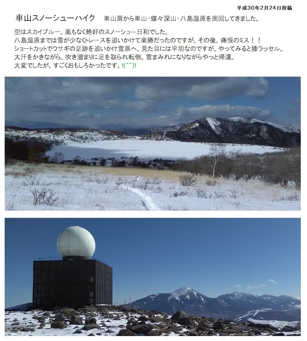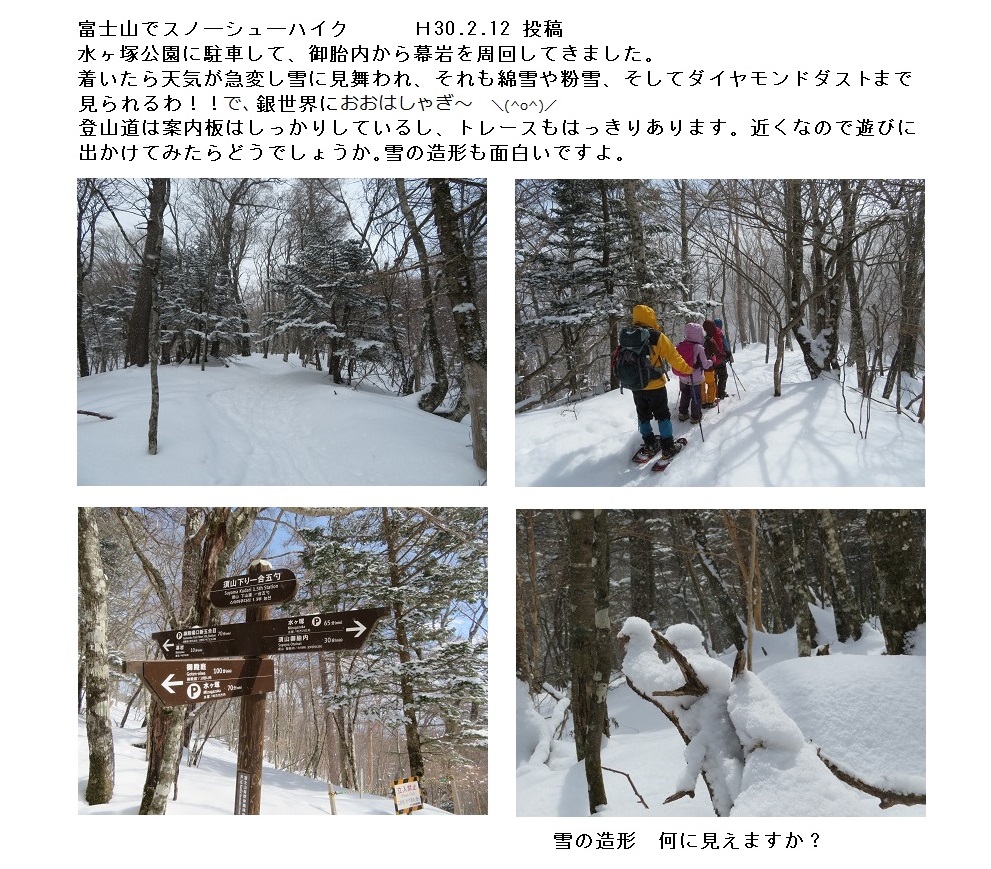 て登ったのですが不慣れな雪道に悪戦苦闘し、やっと登りついたときには写真の様なすこし残念な景色になっ